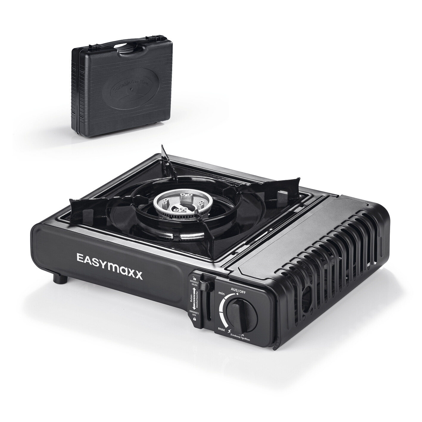 EASYmaxx Gaskocher 2500W tragbar mit Koffer Piezozündung Campingkocher