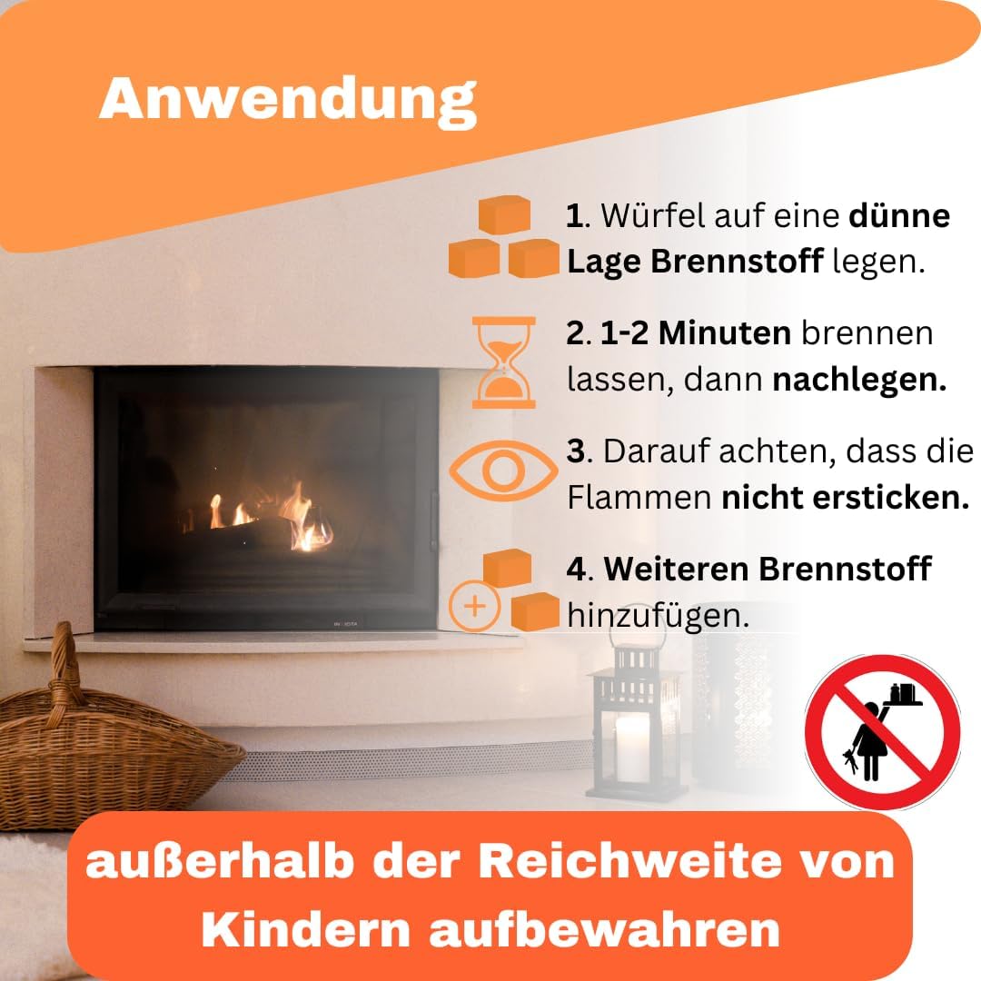 Kohlenanzünder Hellfire – 48 Würfel, geruchlos, ohne Kerosin, DIN geprüft, Made in Germany