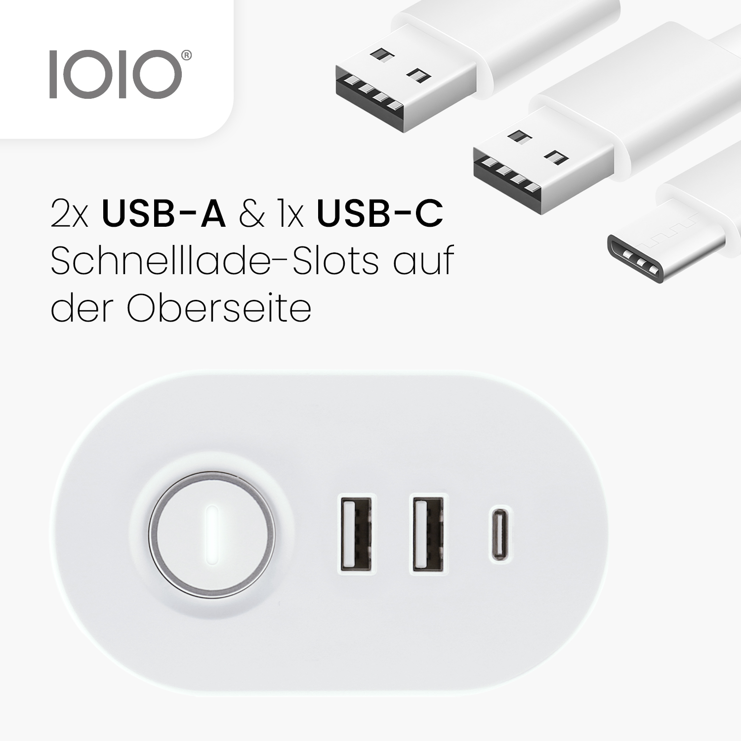 Steckdosenleiste Tischhalterung 3-fach Schutzsteckdose USB-A USB-C Slot weiß