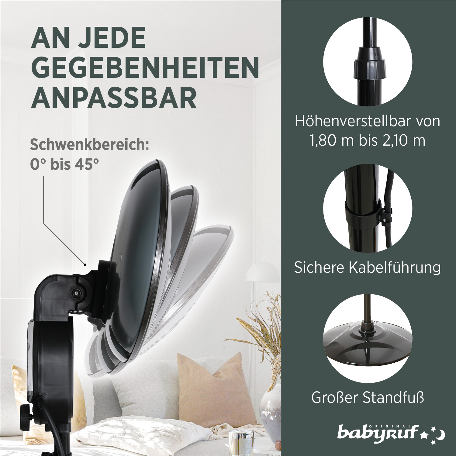 - Schwenkbereich: 0°-45°