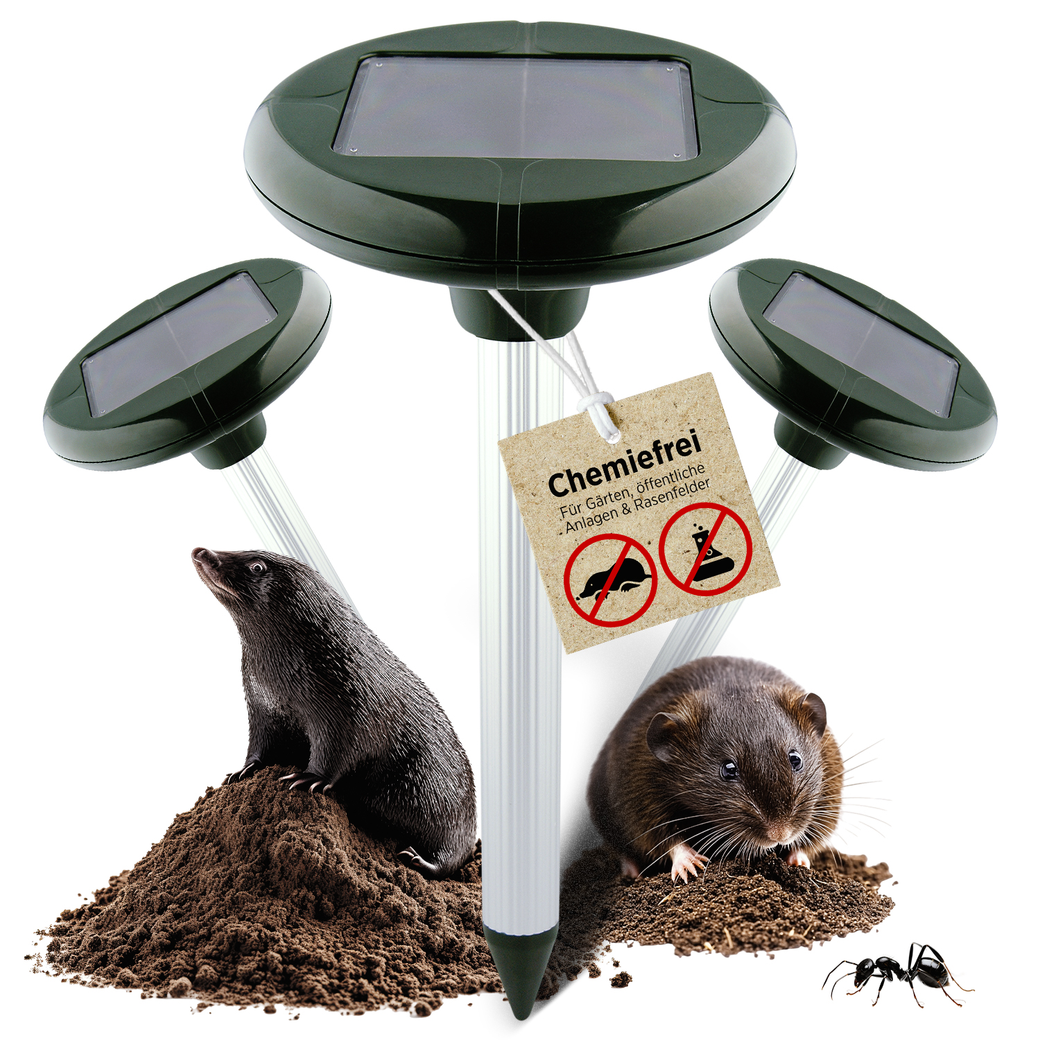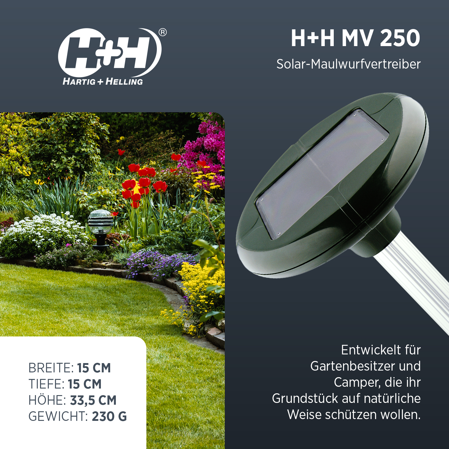 3 Stück H+H MV 250 Solar Wühltiervertreiber Maulwurfschreck, 650 m²