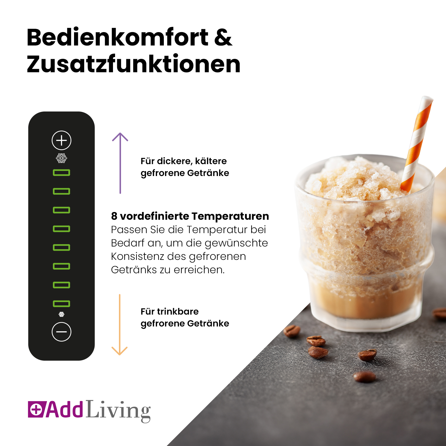 6 Automatikprogramme: Eis, Slush, Spiked Slush, gekühlter Saft, Milchshake & Frappé