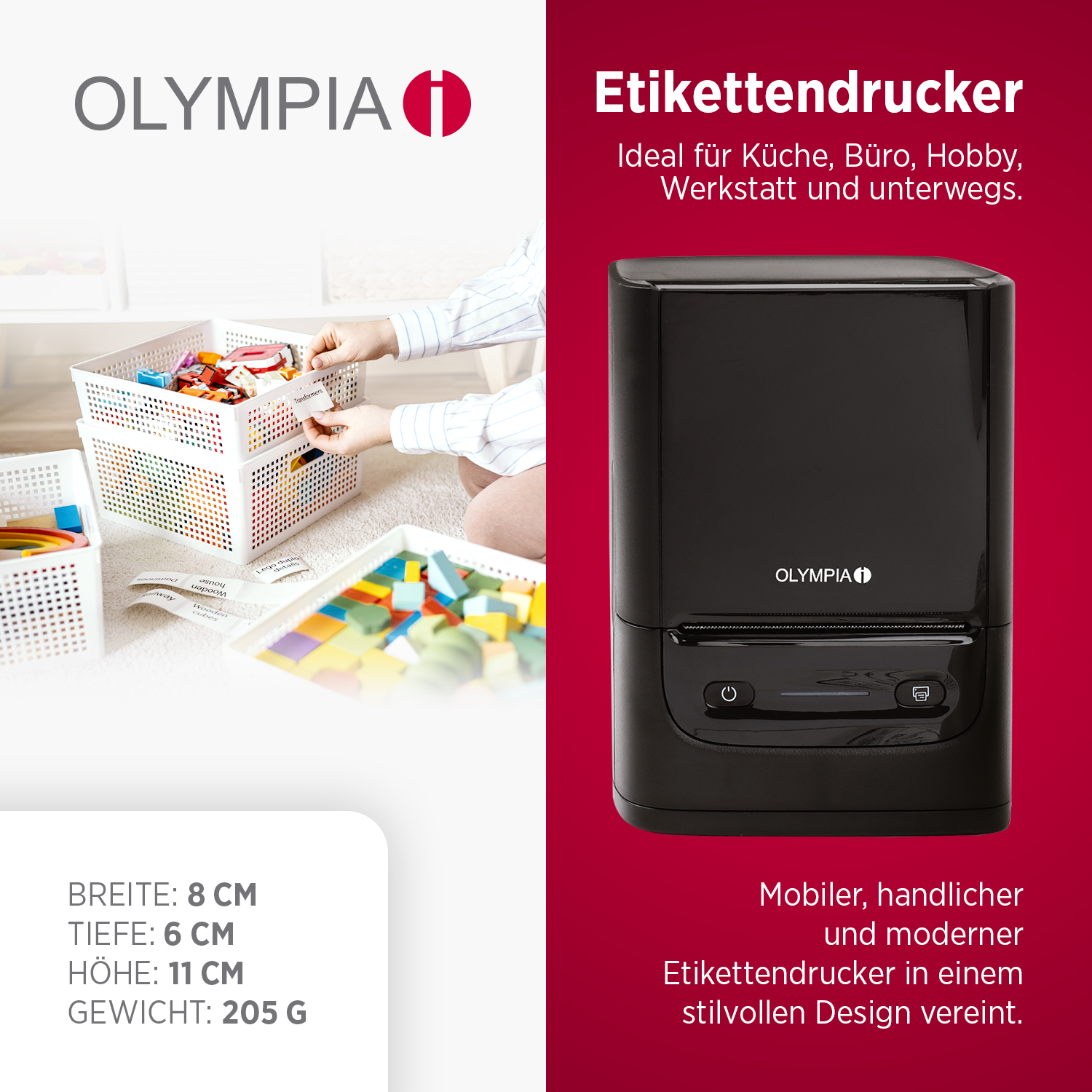 Ob im Büro, in der Küche, im Lager oder auf Reisen – dieser kompakte Etikettendrucker ist dein flexibler Begleiter für jeden Einsatz. Mit verstellbarer Etikettenbreite von 23 mm bis 54 mm passt er sich exakt deinen Anforderungen an. Perfekt für kleine Beschriftungen oder großflächige Labels!