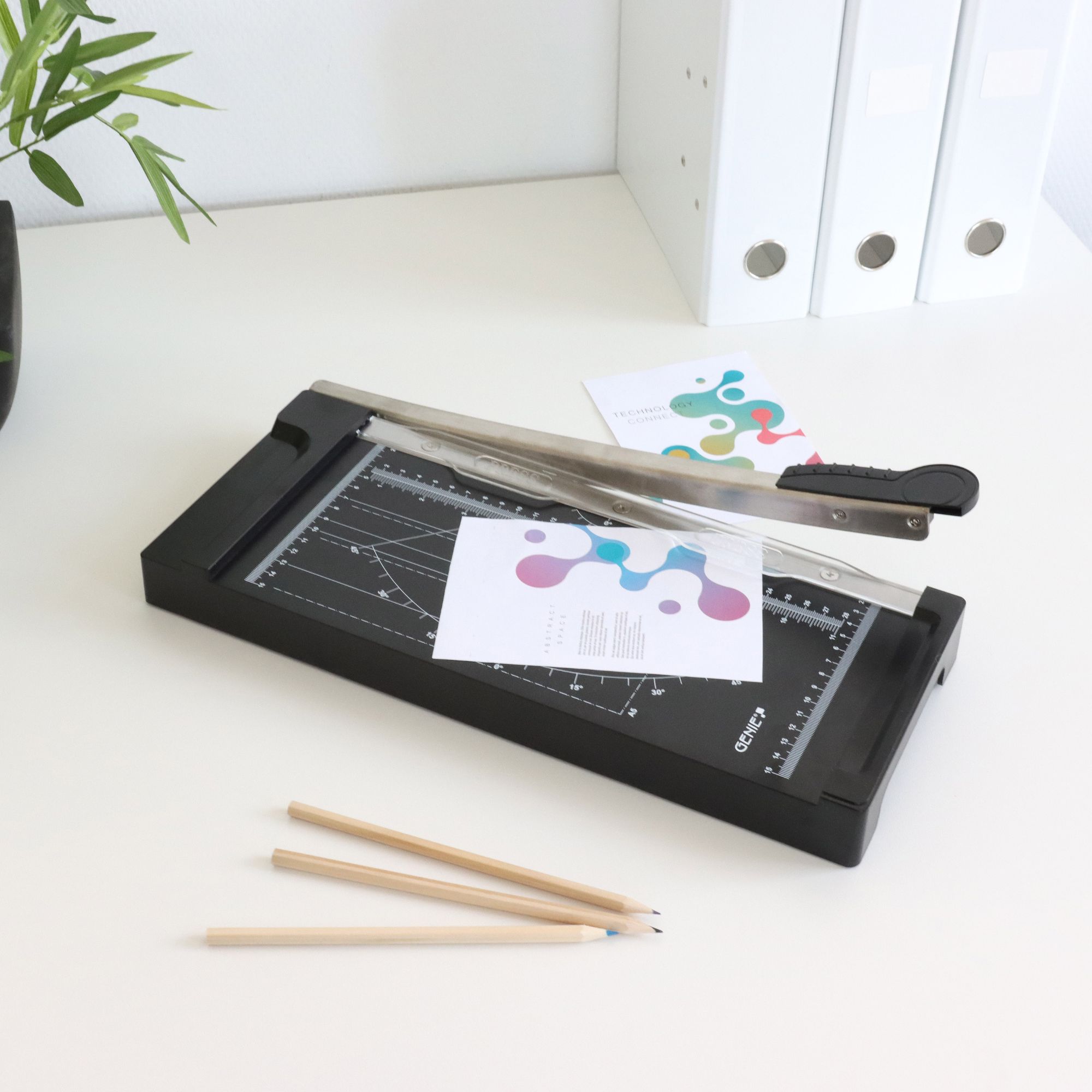 Der GENIE GH 05 Hebelschneider ist der ideale Helfer für präzises Zuschneiden von Papier, Fotos oder Bastelkarton im Privathaushalt, Hobby-Bereich, in der Schule oder am Arbeitsplatz. Auch zuvor laminierte Materialien lassen sich zuverlässig schneiden.