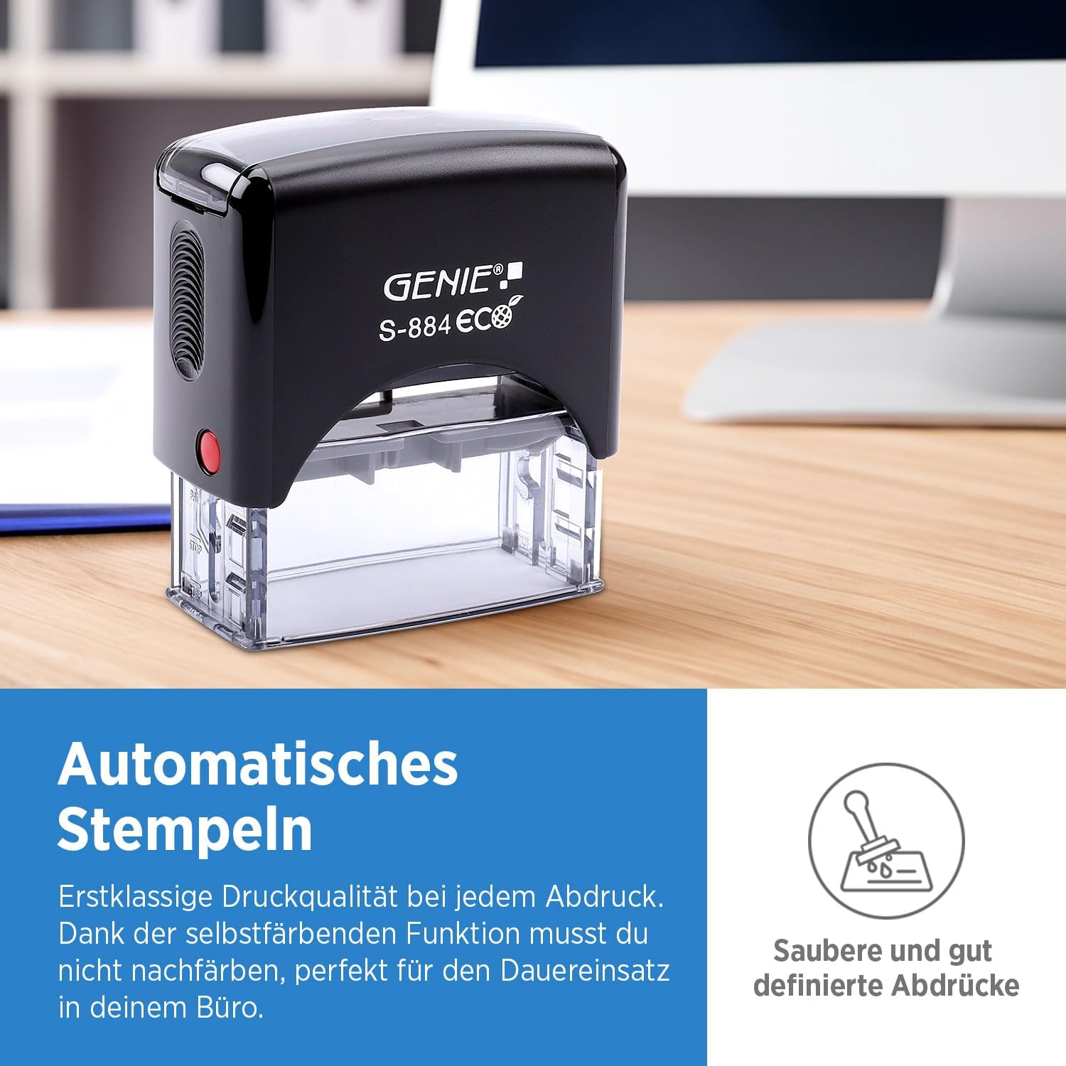 GENIE S-884 ECO Stempel-Set: Robust, Selbstfärbend & Personalisierbar