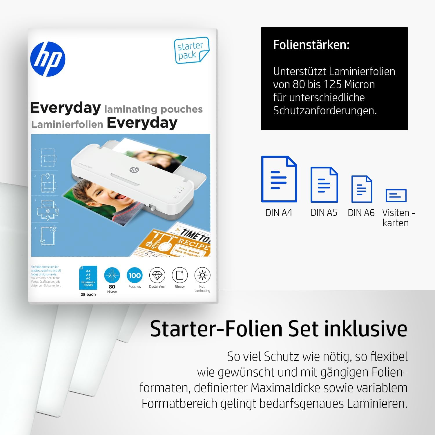 - 1 × HP Everyday Laminierfolien Starter-Set (100 Stück, 80 Mic, glänzend)