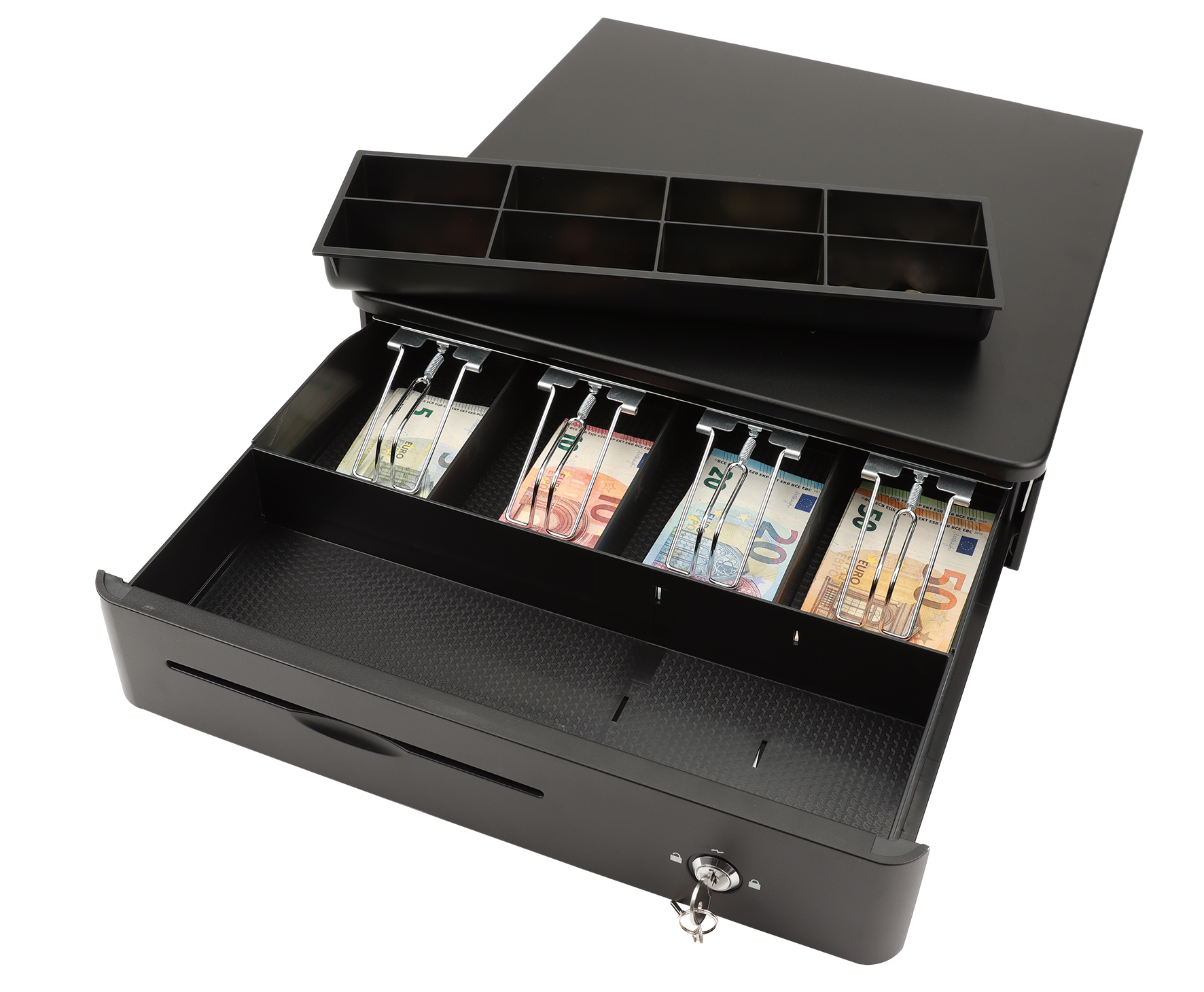 Kassenlade M405 Color Vollmetall 8 Münz- & 4 Schein-Fächer Schloss schwarz