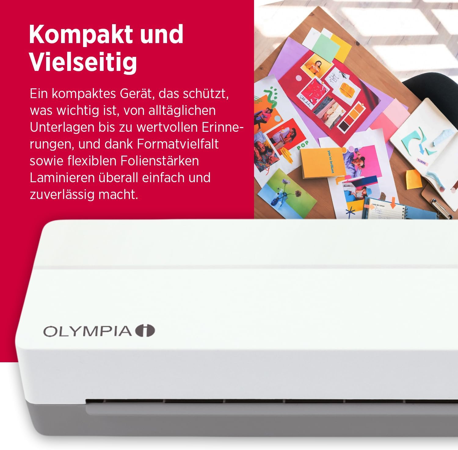 Das Olympia A 130 Laminiergerät ist der ideale Begleiter für Büro, Schule oder Zuhause. Das kompakte Gerät schützt Ihre Dokumente, Fotos und Unterlagen zuverlässig vor Abnutzung, Schmutz und Feuchtigkeit.
