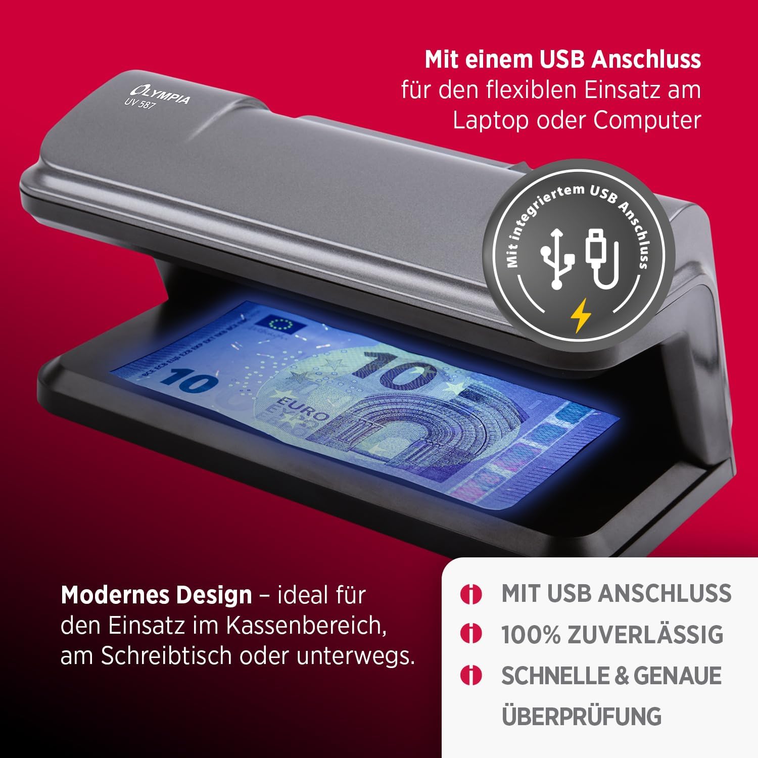 OLYMPIA Geldscheinprüfgerät Wasserzeichentest 2x 3W UV LED UV587