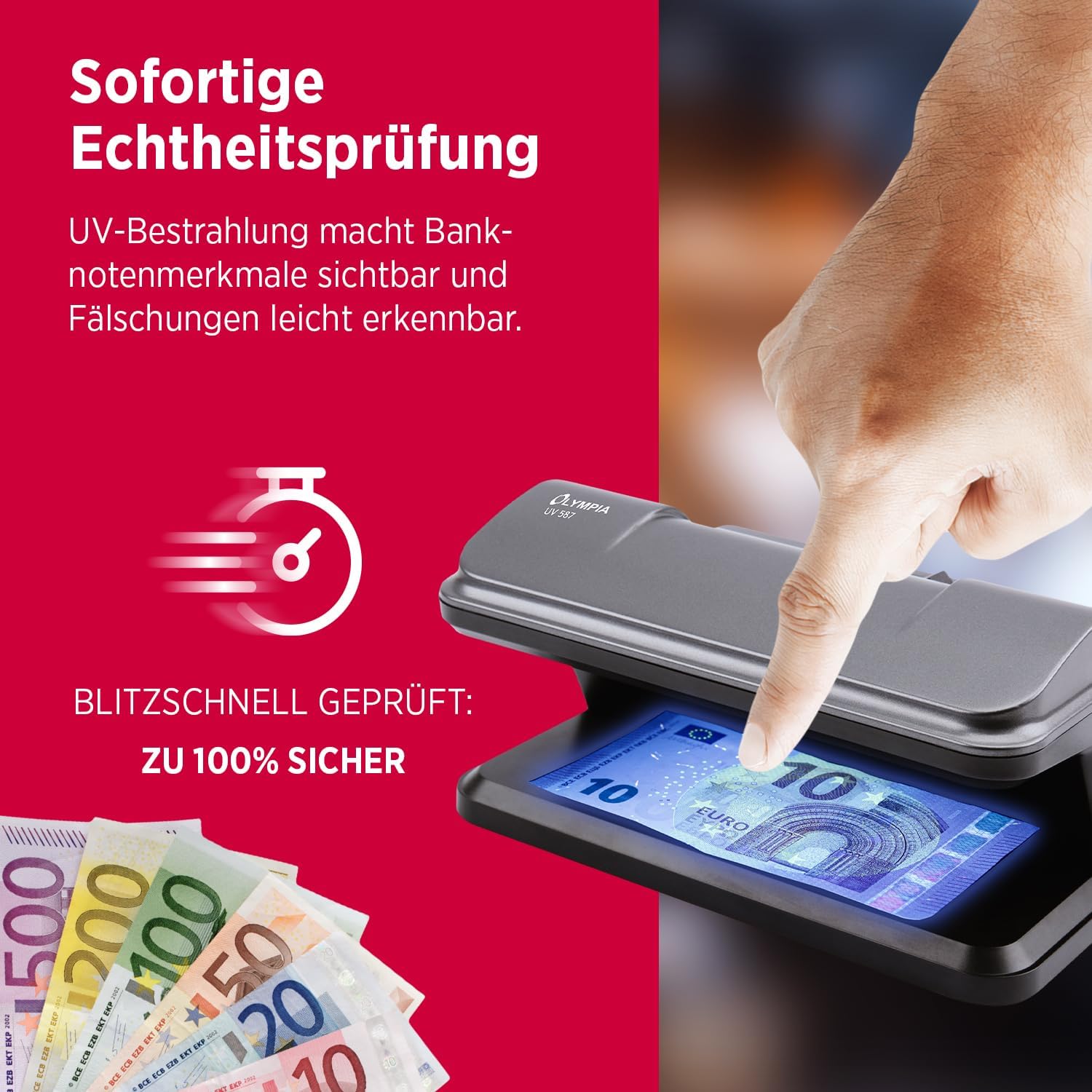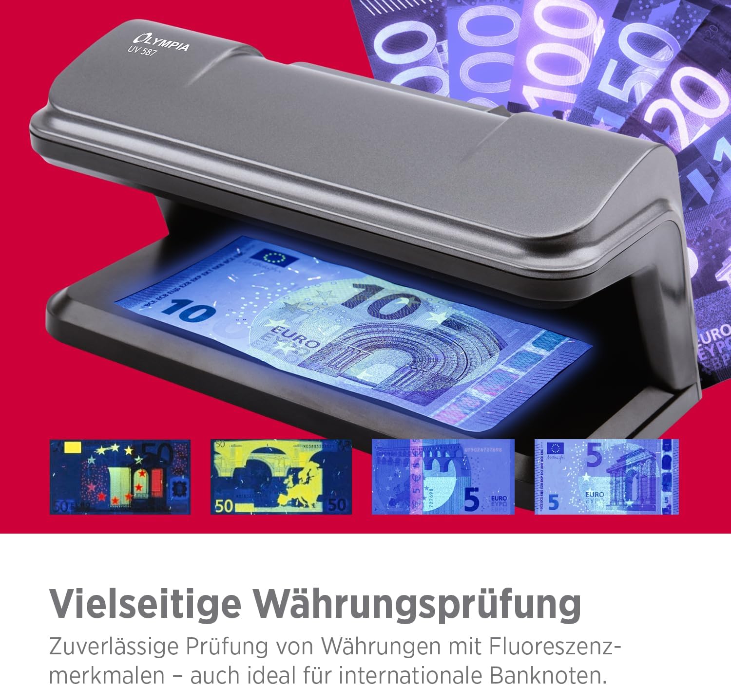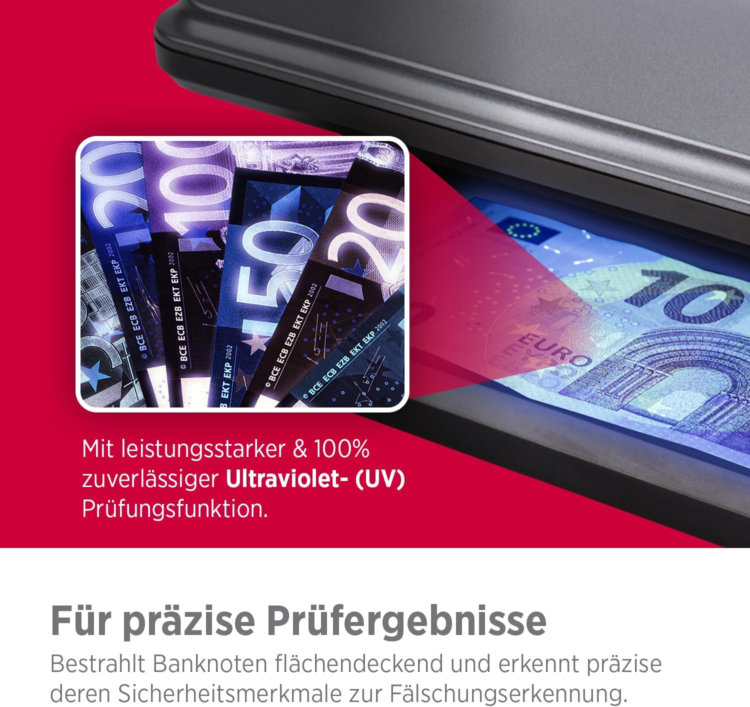 - Zeigt die UV-Spots innerhalb der Geldscheine