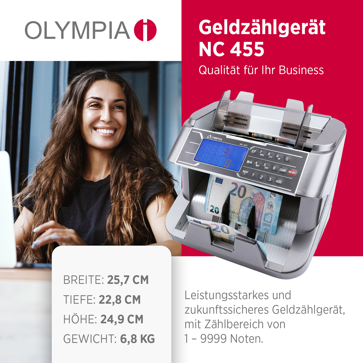 Olympia Geldzähler Stückzähler für sortiertes Zählen Frontlader Prüfung auf UV und MG