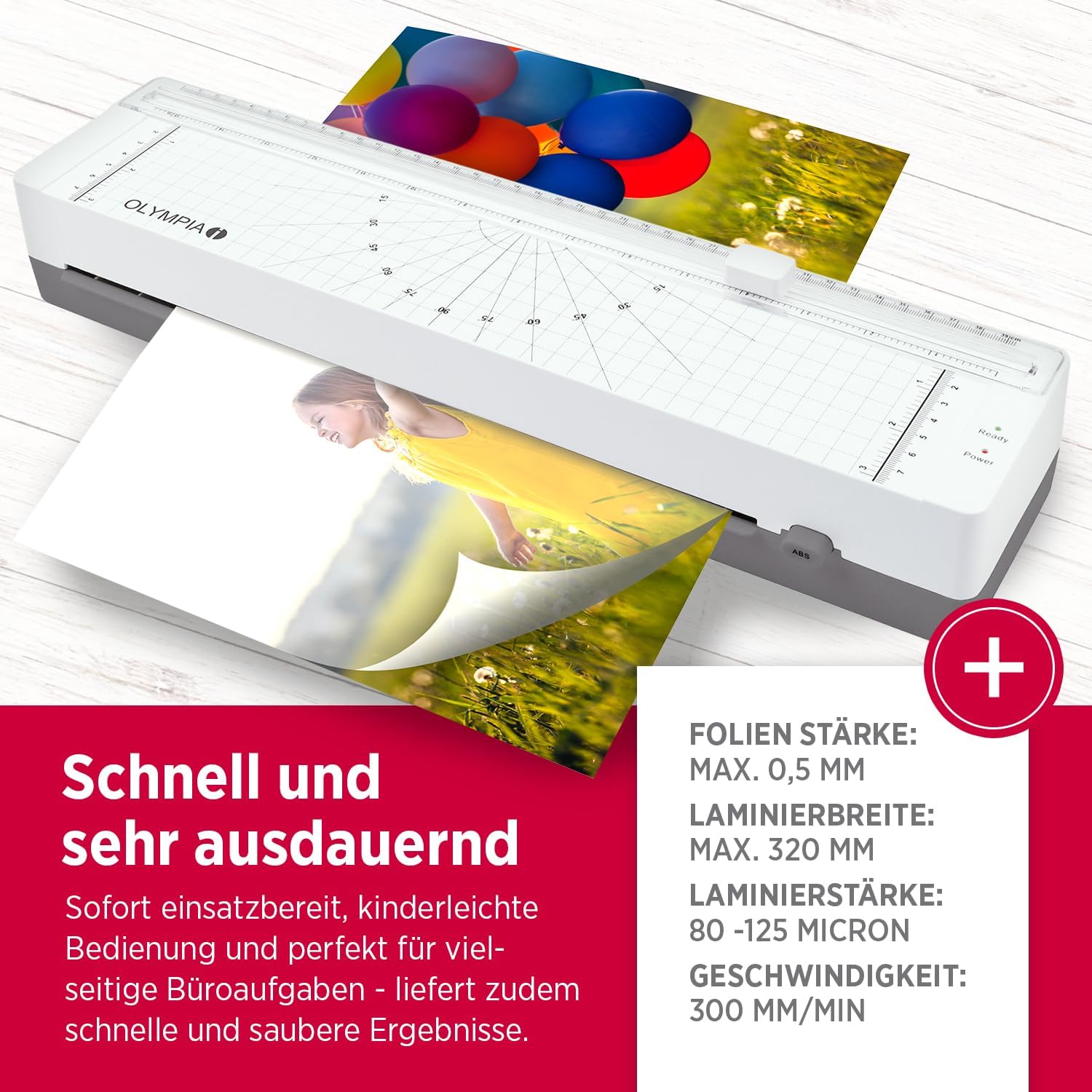 Dank Heißlaminierung erhalten Ihre Unterlagen einen zuverlässigen Schutz vor Feuchtigkeit, Schmutz und Abnutzung. Die integrierte Überhitzungsabschaltung sorgt für einen sicheren Betrieb
