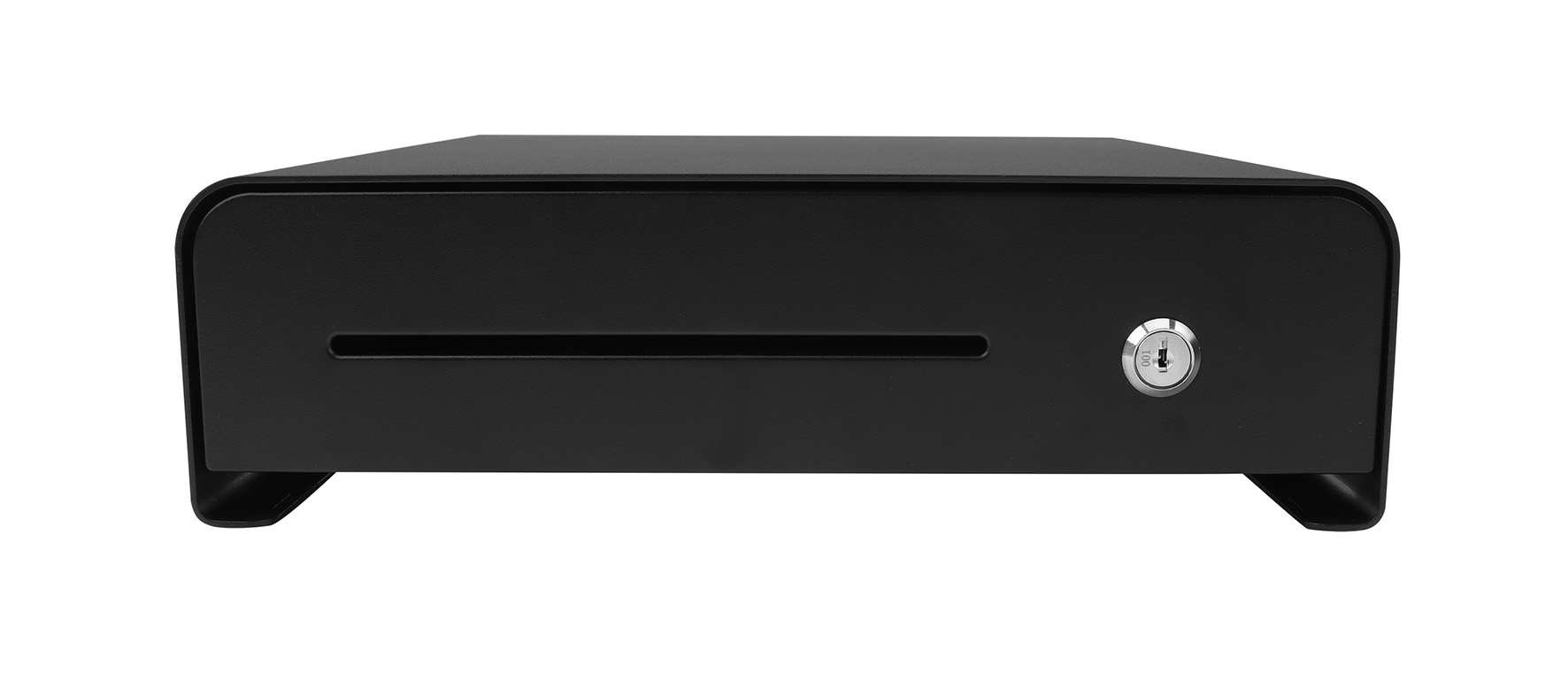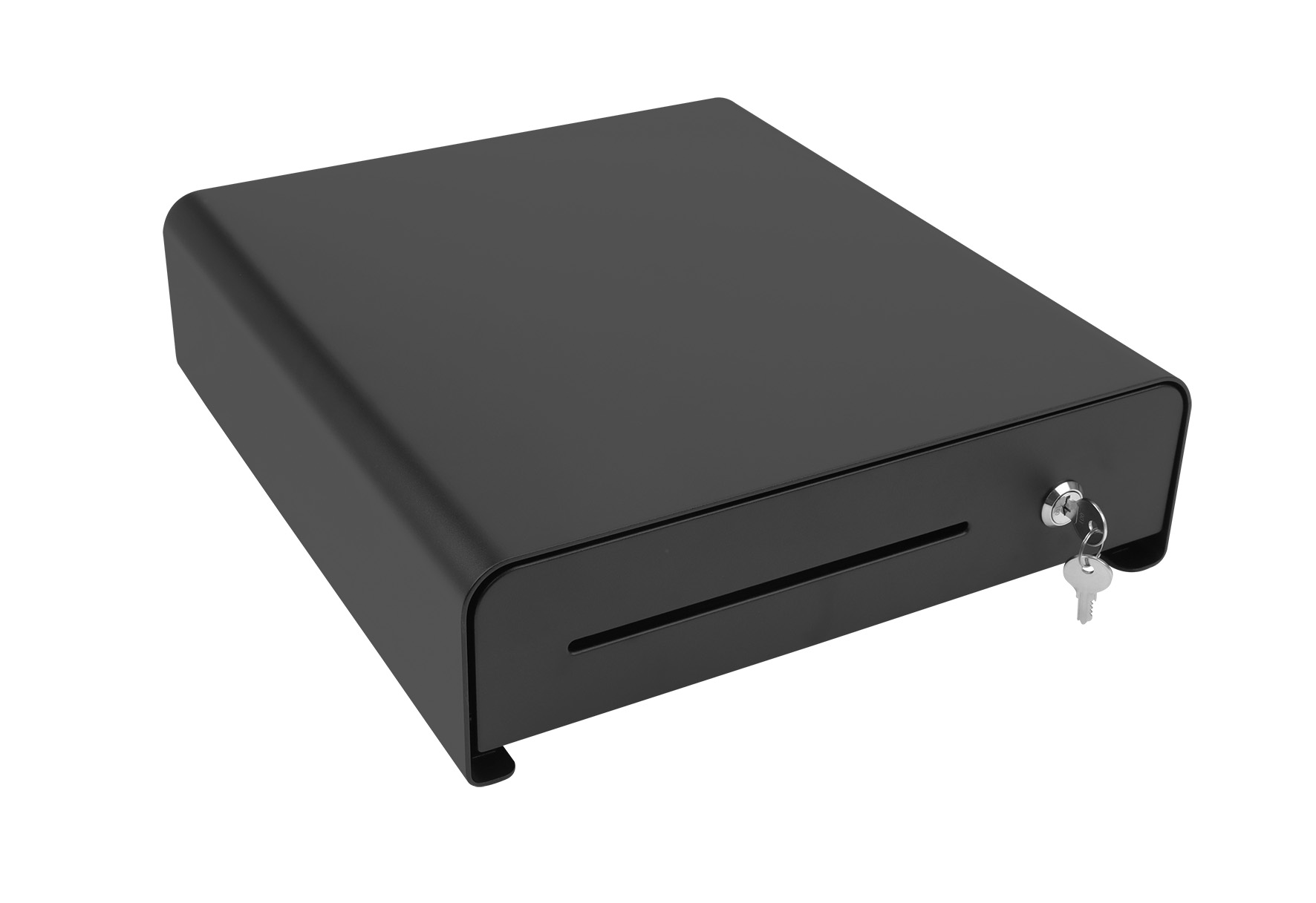 Über den 12–24 V RJ12-Anschluss lässt sich die Olympia Style SD 335 problemlos an gängige Kassensysteme anbinden. Ein integrierter Mikroschalter unterstützt die Kassenkontrolle. Für zusätzliche Sicherheit sorgt das Schloss mit drei Schlüsselpositionen (verschlossen, in Betrieb, geöffnet), das inklusive zwei Schlüsseln geliefert wird. Die Kassenlade ist in Schwarz oder Weiß erhältlich und passt sich optisch jeder Verkaufsumgebung an.