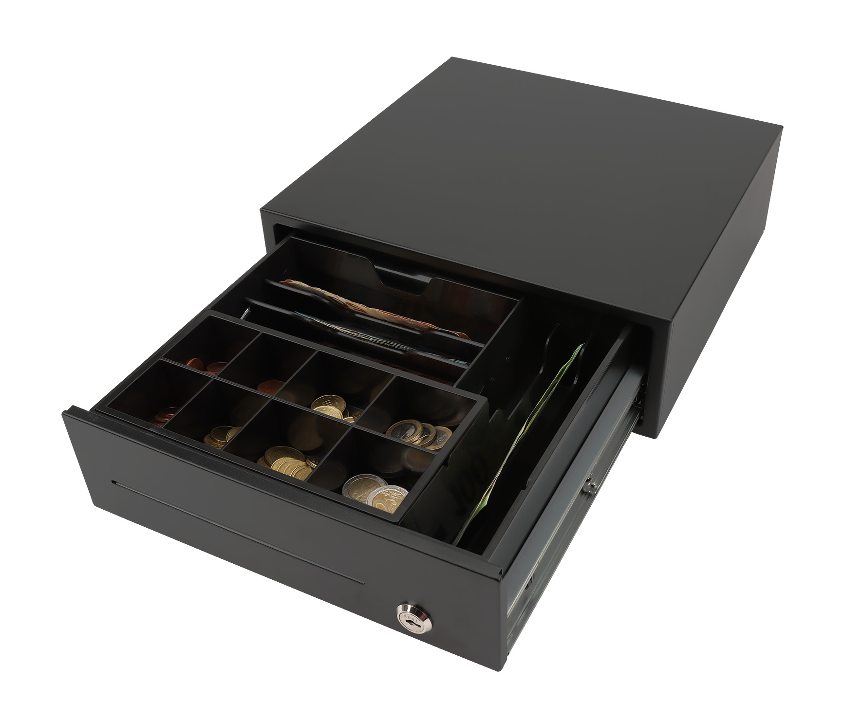 - Fächer: 8 Münzfächer, 5 Scheinfächer