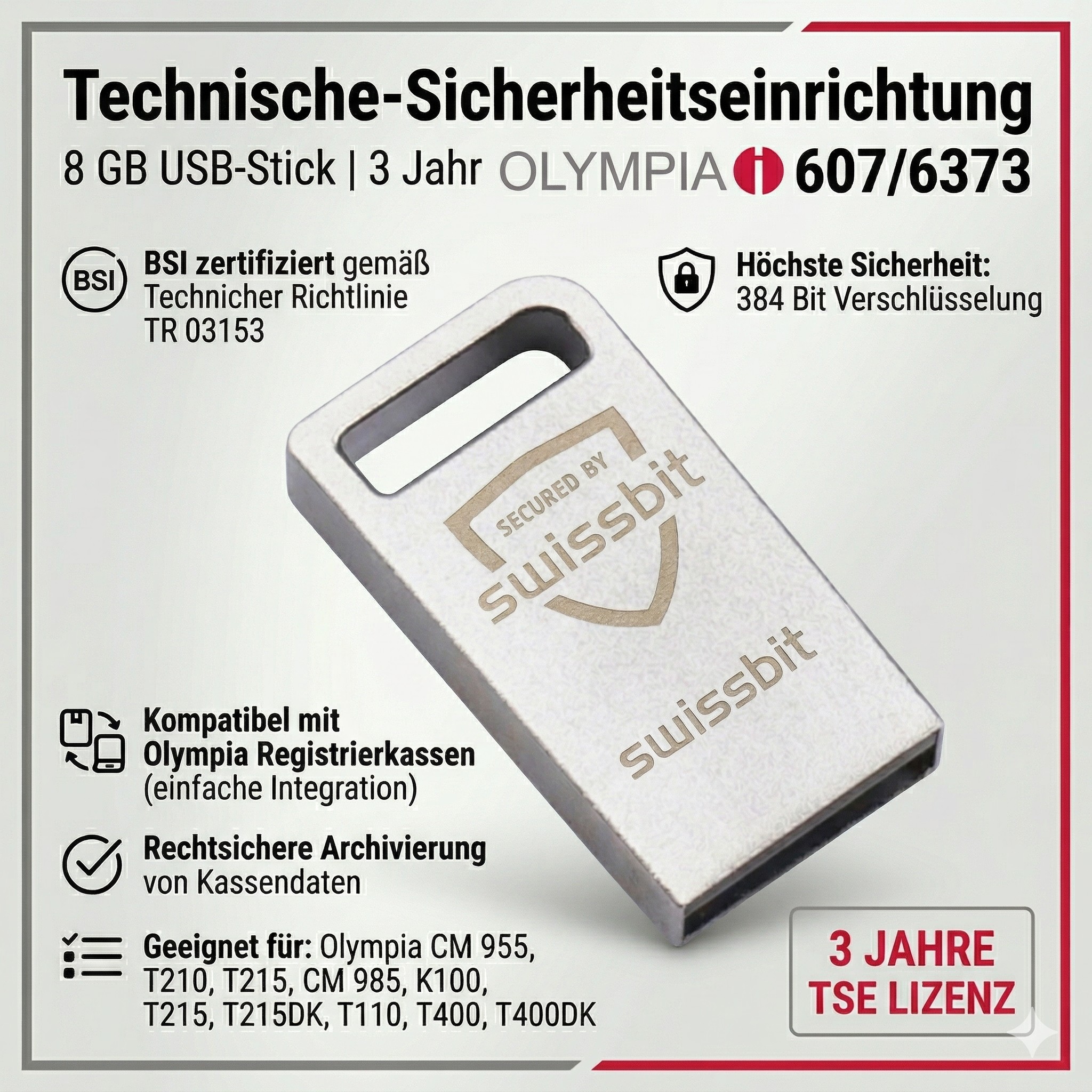 Olympia 607373 TSE USB-Stick (8 GB) inkl. 3 Jahre Lizenz – Rechtssichere Fiskalisierung für Ihre Registrierkasse