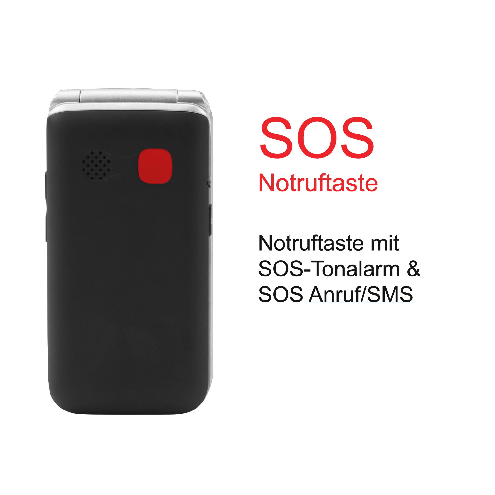 Ein besonderes Sicherheitsmerkmal ist die SOS-Notruftaste, mit der im Notfall schnell Hilfe angefordert werden kann. Außerdem verfügt das Gerät über eine automatische Ladeerinnerung per SMS, die rechtzeitig an das Aufladen des Akkus erinnert.