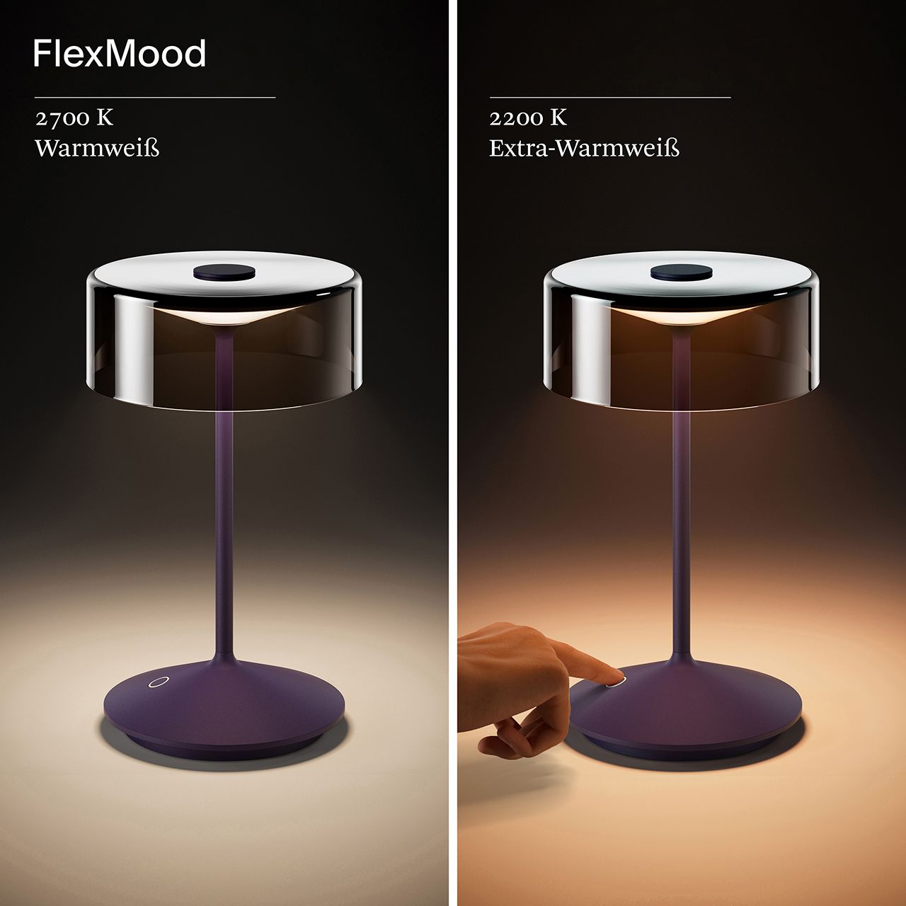 B-Ware Numotion Akku Glasleuchte Sigor Tischleuchte IP 54 Pflaumenblau 265mm 2,2W FlexMood 2200K/2700K 171lm Ra85 dim