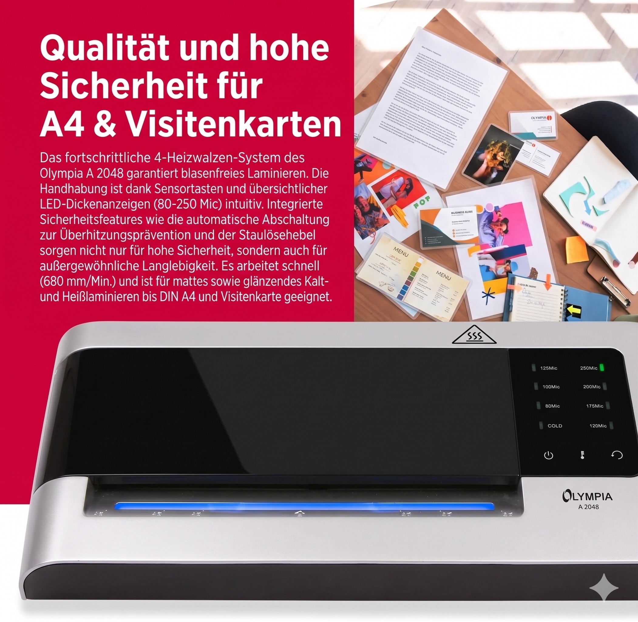 Olympia A 2048 A4 Laminiergerät Profi Laminiermaschine Schnell Heiß Kalt 4 Heizwalzen 80-250 Mic