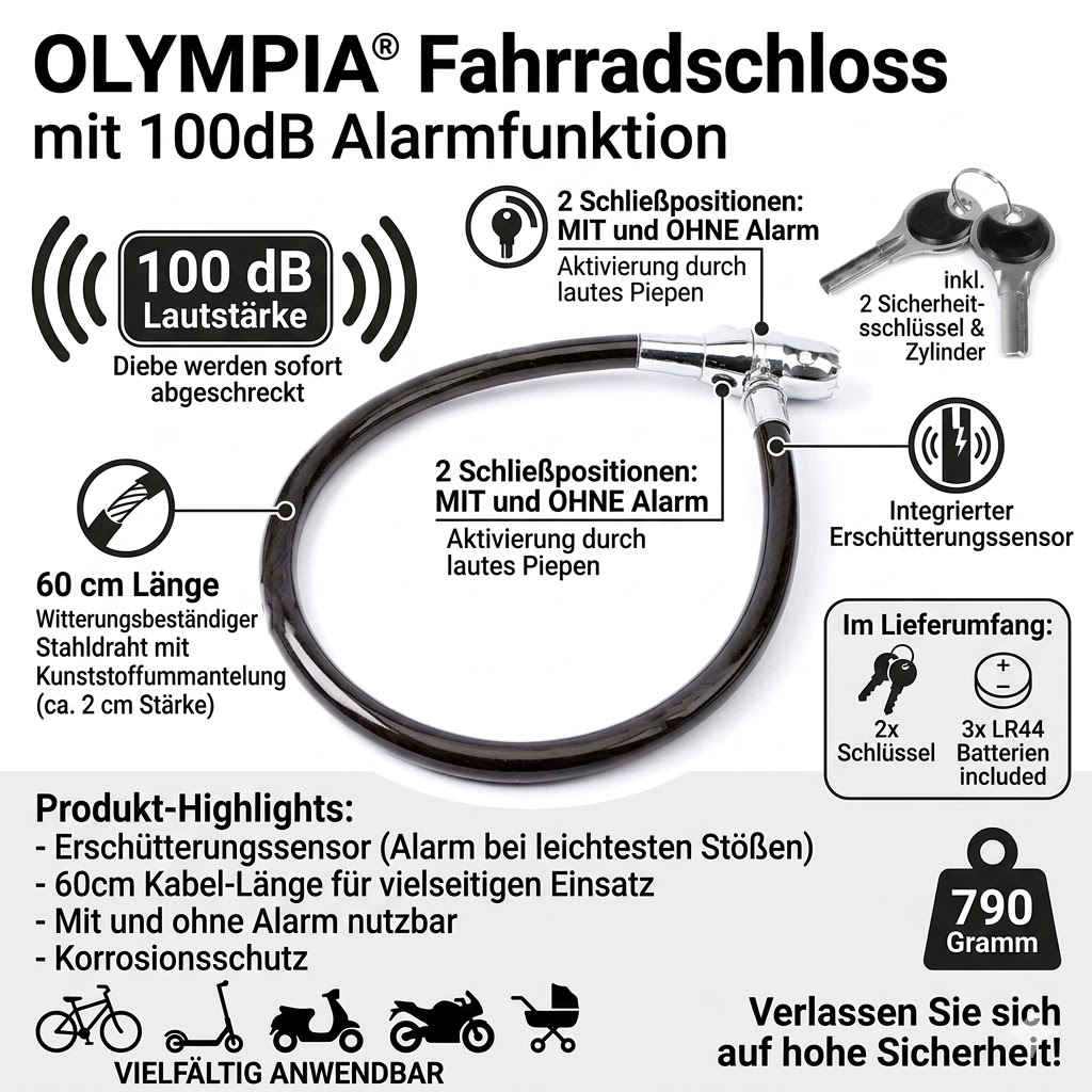 Verlassen Sie sich ab sofort auf die hohe Sicherheit der Olympia Fahrradschlösser mit Alarmfunktion!