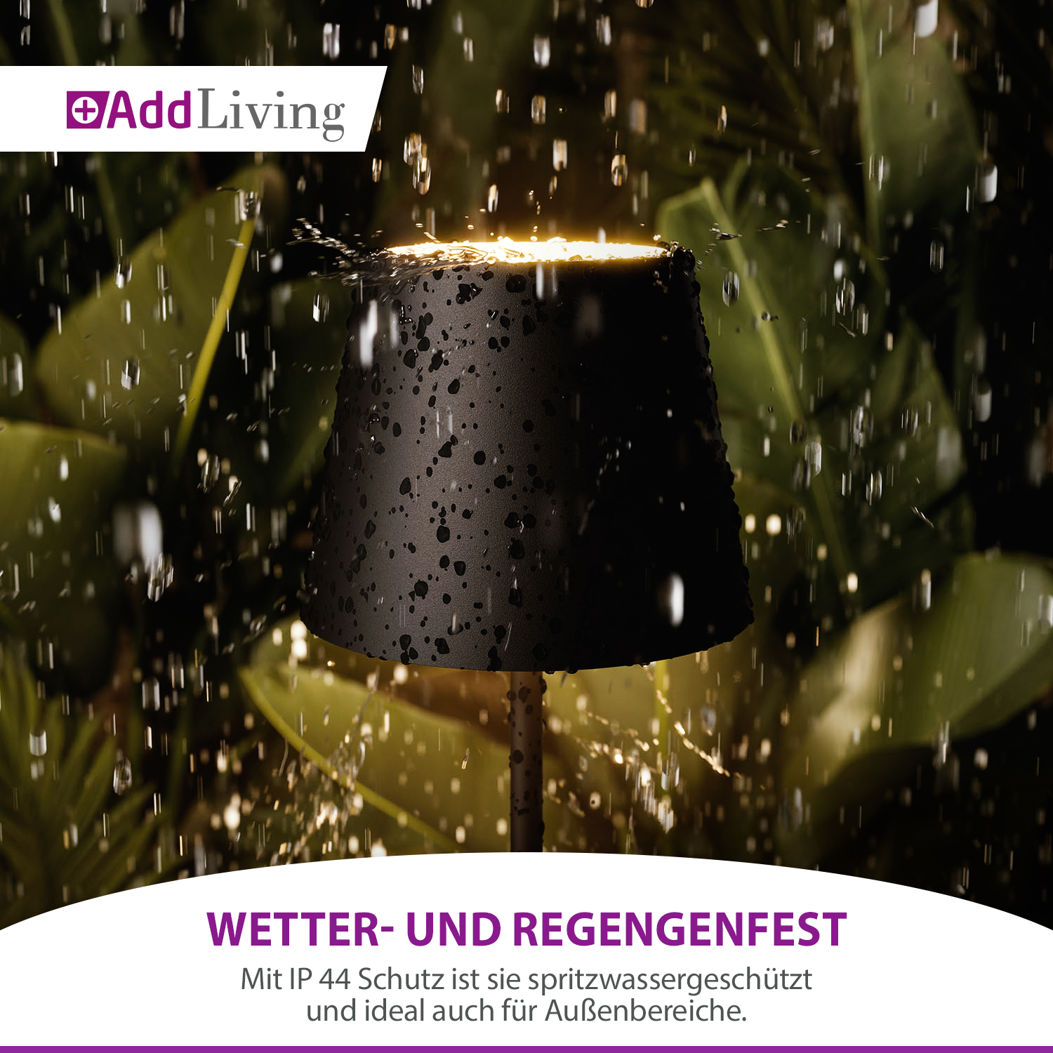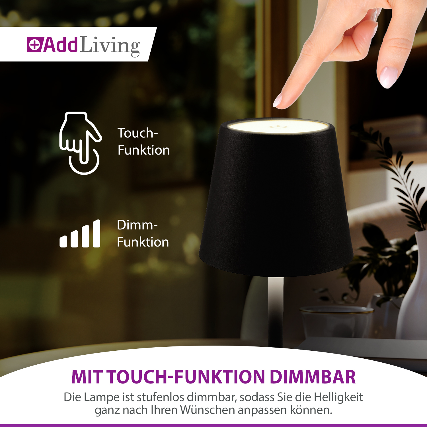 2 Stück LED Tischleuchte FASHION dimmbar mit Touch Funktion 3 Lichtfarben IP44 12h Akku schwarz