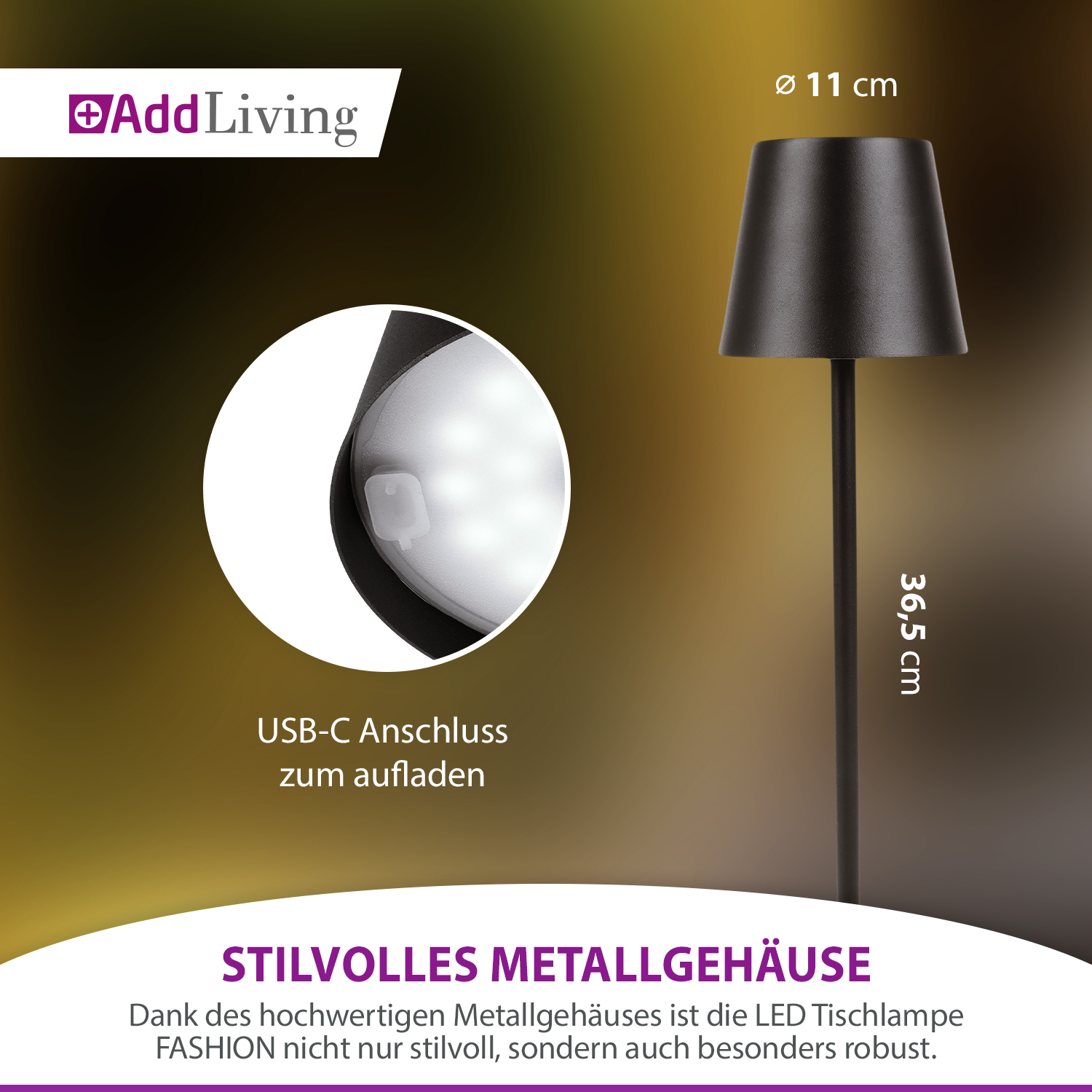 Ob auf dem Nachttisch, der Terrasse oder dem Schreibtisch – die LED-Tischleuchte FASHION setzt stilvolle Akzente und passt sich Ihren Bedürfnissen an.