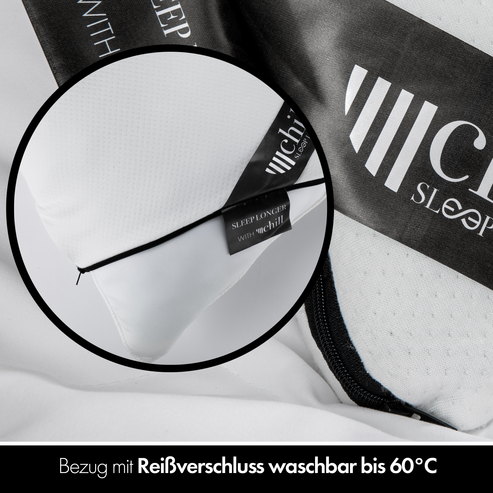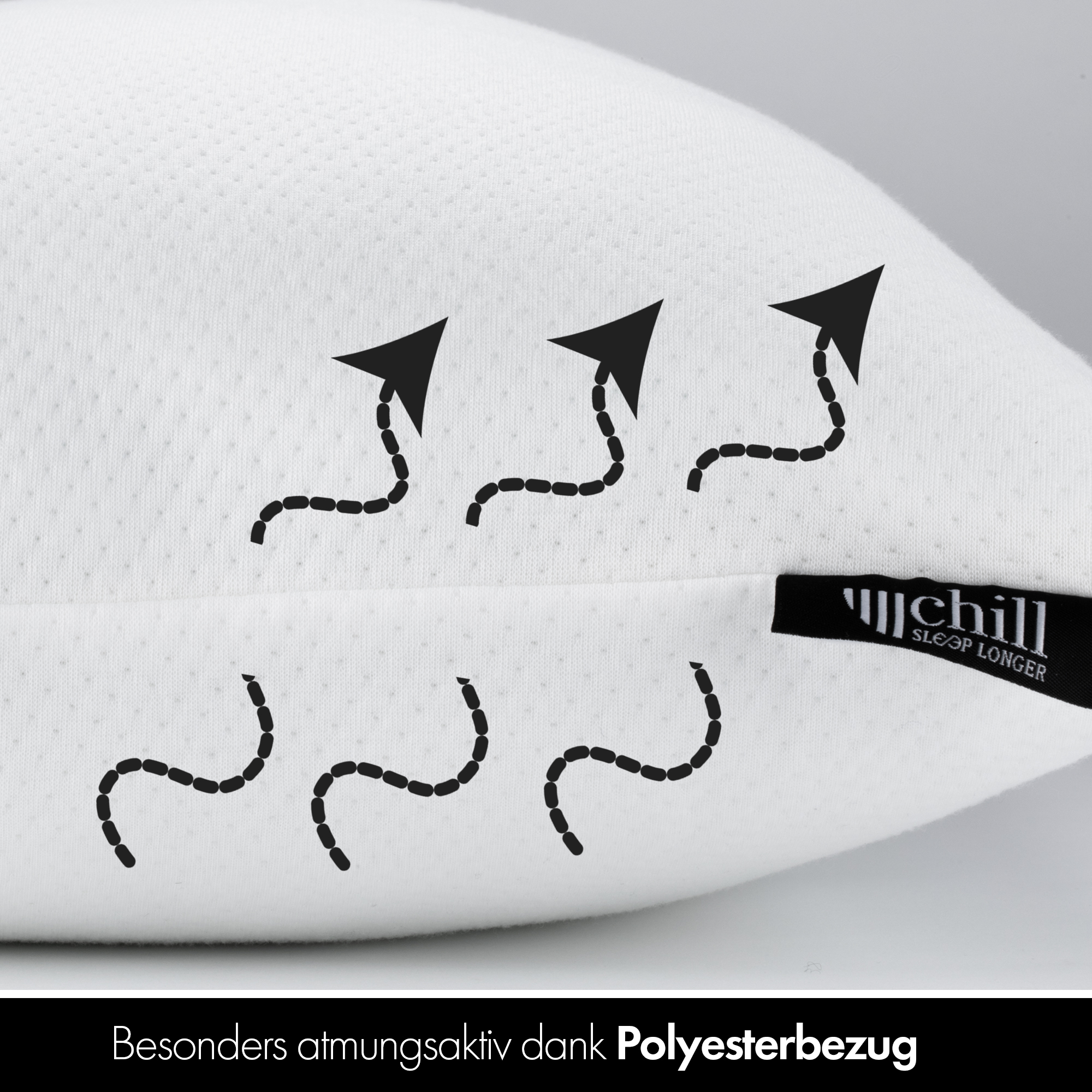 Erlebe erholsame Nächte mit dem chill SLEEPLONGER Nackenkissen. Dieses Orthopädie-kissen in der praktischen Größe 40 × 80 cm bietet optimalen Komfort und sorgt gemeinsam mit dem atmungsaktiven Design für ein angenehmes Schlafklima