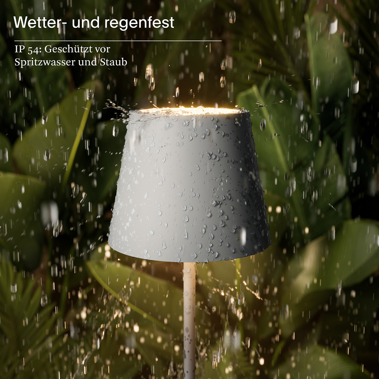 - **Robuste Konstruktion:** Hergestellt aus eloxiertem Aluminium ist die Tischleuchte für den Außenbereich geeignet und bietet eine lange Lebensdauer.