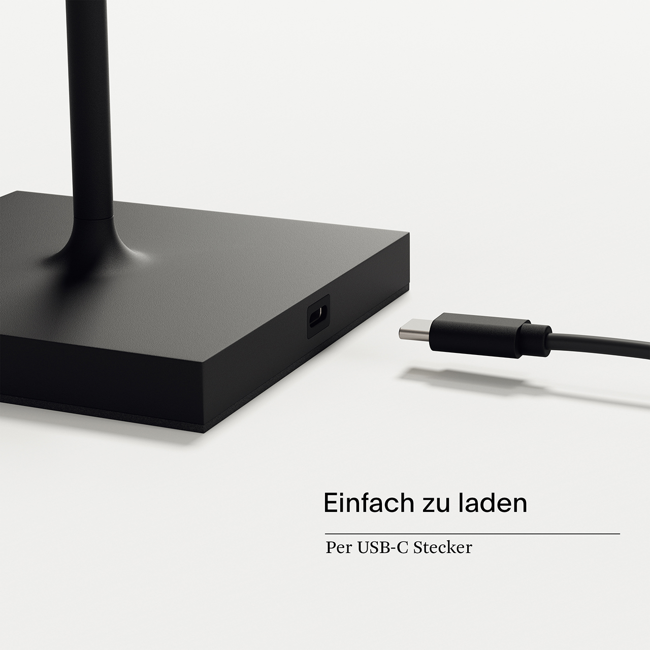 Wiederaufladbar: Mit dem beiliegenden USB-Netzteil und dem 1,2 m langen USB-C-Ladekabel mit lässt sich die Akkuleuchte bequem und unkompliziert aufladen. So leuchtet sie bis zu 12 Stunden und das ganz ohne Kabel (Akku Li-Ion, 4.400 mAh).
